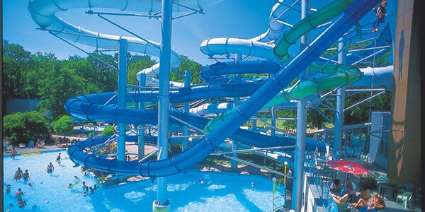 Duinrell staat bekend om zijn glijbanen. Echt iets voor onze zoon van acht jaar en mijn man.