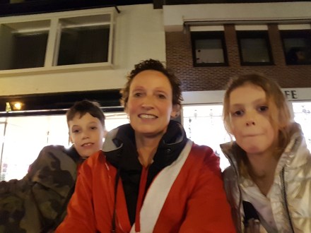 Mijn dochter kreeg een santa jurkje. Ik een broekpak en mijn zoon wilde de zijnde niet aan. Gelukkig wel een nummer op zijn rug. Daar kregen we nog appels en flesjes water. Voor de kids ook nog een extra licht buis. Super leuk. De kids waren bang voor het startschot. Daardoor stonden wij helemaal achteraan en nog een stuk daar vandaan. Dat doen wij niet nog een keer. We haalden een paar mensen in maar de gezellige grote meute liep een eind voor ons. Het was nog steeds gezellig. En wat viel mij de afstand tegen. Volgend jaar loop ik deze getraind. Nu al zin in. De kids ook.