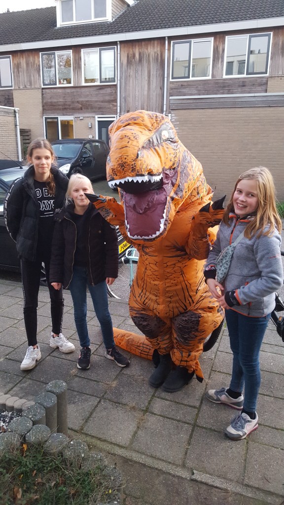 Ineens werd hier aangebeld. Ik zag een dino.