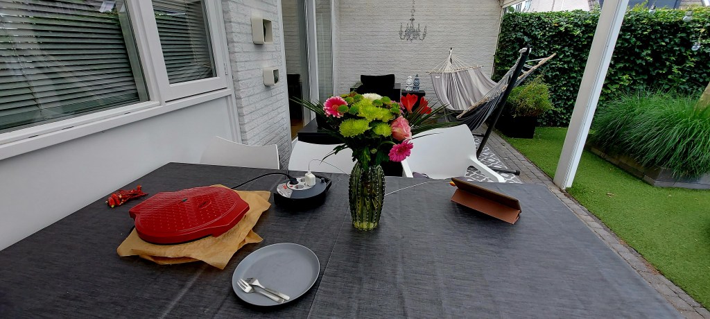 En wat een shit zomer hebben wij nu. De temperatuur is wel ok. Maar die regen. Uuuh, hier klopt iets niet. Nederland had toch te maken met teveel droogte? Nou, nu even niet. Zo sneu voor de mensen die in dit land kamperen. Of wij 👩👧👦. Gelukkig hebben wij een overkapping. Screens omlaag. Ik zit dus nog steeds buiten. Wij aten buiten. Oventje op tafel. Af en toe de vuurhaard aan. Prima te doen.