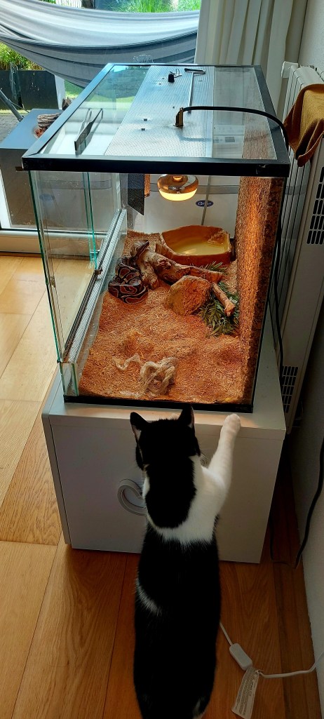 Ik geef Snoopy, een oppas kat elke dag eten. Schat van een beest. Ik roep,en hij komt er meteen aangelopen. Dan ronkt zijn motertje als een malle. Samen rennen wij eenmaal binnen in huis de trap af. Beneden krijgt meneer zijn zakje voer. Op de trap roep ik al; vandaag is het lekkere zalm of koe. Akan meneer zich vast op de smaak voorbereiden. Dan vreet hij zowat het zakje uit mijn hand. Geweldig. De motor gaat dan uit. Alle energie gaat naar het eten.