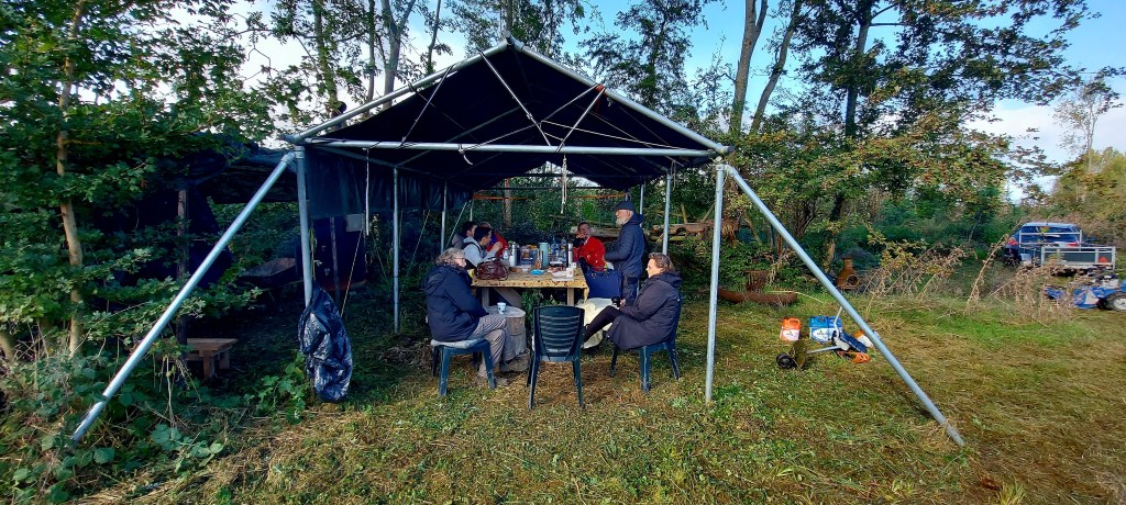 Mijn oom kan heerlijk mopperen. Iedereen ligt altijd in een deuk. Samen met mijn broer die hem opjut, komen er vele discussies. Zo ook de enigste populieren boom die wij hebben laten staan werd een discussie punt. Er stond teveel rommel omheen. Mijn tante ging het gesprek filmen. Ze zei al; ik kan wel vlogger worden met deze gesprekken. Word ik stinkend rijk. Op een gegeven moment zei mijn tante; vloog daar nou een boomstam door de lucht? Whahaaa, zou wel heel toevallig zijn. Deze werd gegooid. Van een afstand is het zo genieten om de familie zo samen te zien en de gesprekken te horen.