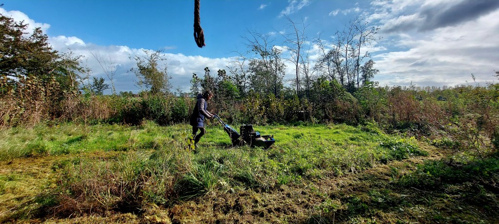 Wat heb ik toch een fantastische familie. Gisteren gingen wij naar het Landje. Dat stukje bos van ons. Nou ja, bos. Veel gekapt. Best wel kaal nu. Lang niet geweest. Mijn vader en broer gingen vroeg. Met de klepelmaaier een pad maken naar achteren. Anders kon je er met de auto niet doorheen. Zoveel onkruid en nieuwe scheuten van bomen.