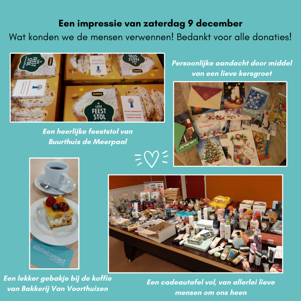 Mocht u iets over hebben van een kerstpakket? Alles is welkom. Weggooien kennen wij niet. Echt alles, vooral eet producten, worden in grote dankbaarheid door ons aangenomen en weer uitgedeeld aan mensen die dit kunnen gebruiken.