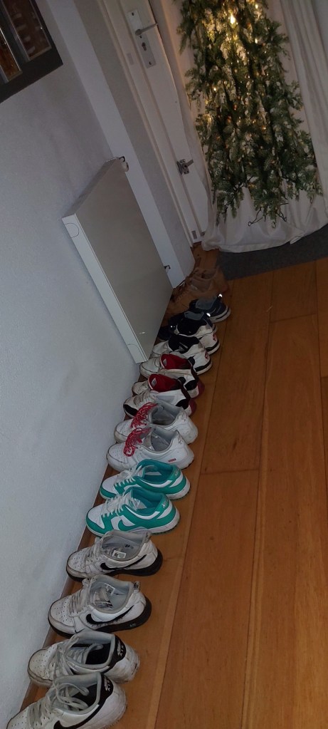 Ik had een super avond. Geen moment alleen geweest terwijl ik officieel alleen thuis was. Daan en stiefbroer kwamen wat vuurwerk hier ophalen. Vrienden klopten aan. Een hele rij schoenen bij de deur. Toen ze compleet waren gingen ze allen naar buiten.