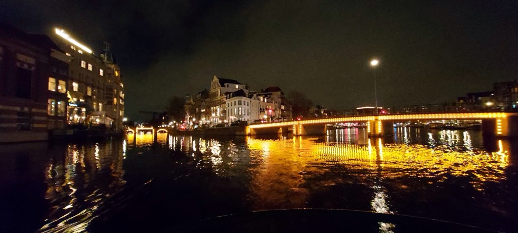 Wij gingen met familie naar Amsterdam. Wat een avontuur. Iets van mijn Bucket list. Het was fantastisch. Verhaal volgt nog. De fotoβs zijn niet super. Het is maar een telefoon en fotoβs in het donker. Nog een handicap; de verlichting in de boot en fotoβs door het raam maken. Maar de herinneringen zijn fantastisch!