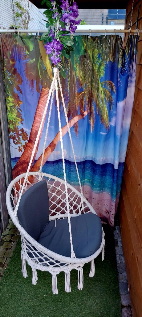 Ik ben ook zo blij met mijn lampjes boven mijn in de avondzon chill stoel. De volgende keer zet ik het geluid van het strand, de zee aan.