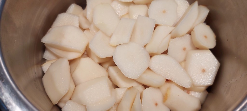 Maar ik hield nog wat over. Niet veel hoor. Ik dacht; ik ga deze koken met een vanille stok. Heerlijke peren mouse voor in een smoothie of ipv appelmoes. Gedaan. Ligt in de vriezer.
