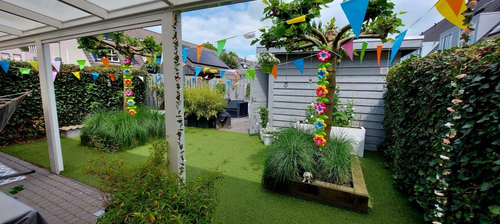 Deze foto is van afgelopen zaterdag morgen….kijk even naar die mooie struiken in de zithoek. Toch had ik daar een niet pluis gevoel over.