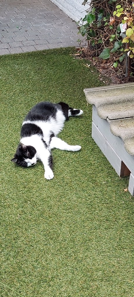 Ondertussen lag de kat in de tuin. Te heet.