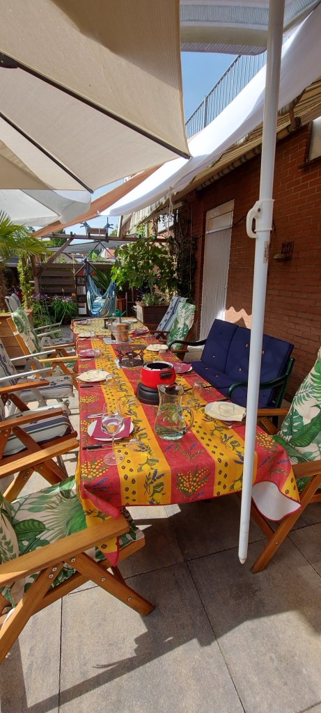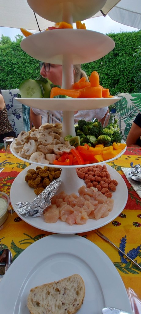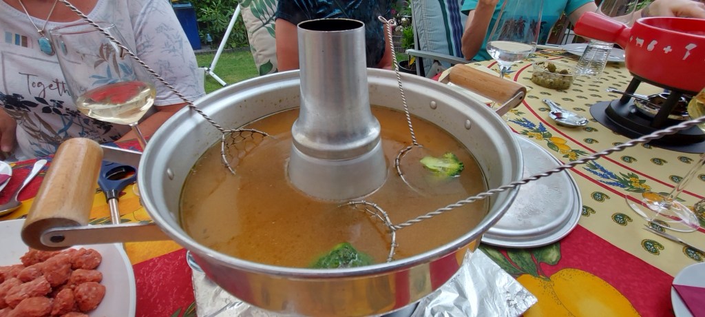 Daarna fietste ik met mijn schoonzus naar haar huis. Daar de auto in gestapt. Moeders opgehaald. Door naar Renkum. Tante en nichtjes feest. Genoten van een bouillon en kaas fondue. Het eten was heerlijk. Iedereen had wat meegenomen.
