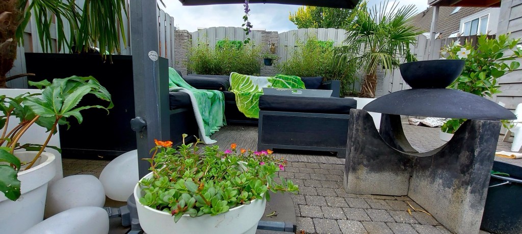 Wij maken er wat van ondanks dat wij niet naar een warm/koud vakantie land kunnen. Wij hebben een heerlijke tuin. Vandaag was weer (best onverwachts) een mooie dag. Dan zitten wij ook meteen buiten.
