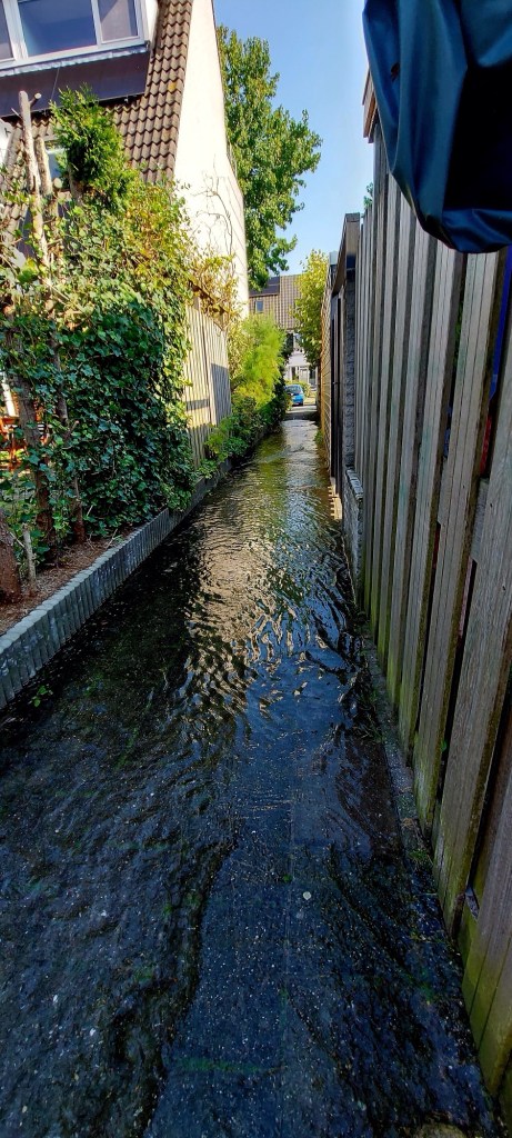 Er kwam een jongetje van de andere kant aan fietsen. Hij zei; dat mag niet, wat jij doet. Er is nu overal water. Nu kan ik niet fietsen. Want van papa mag ik niet door water plassen fietsen 😂.