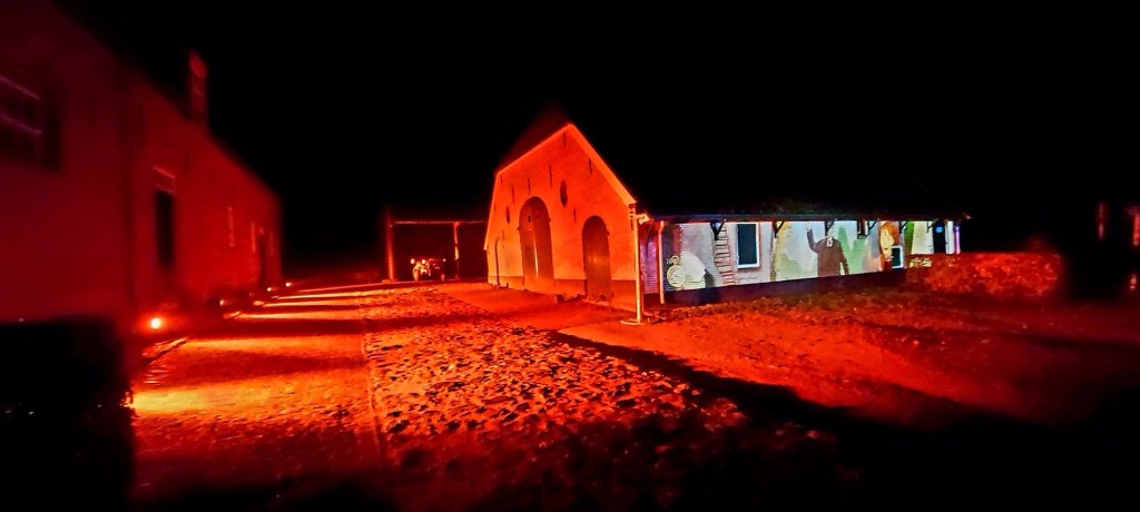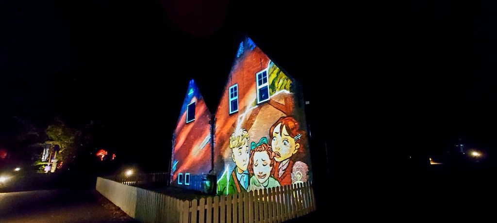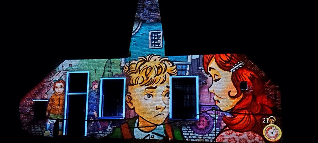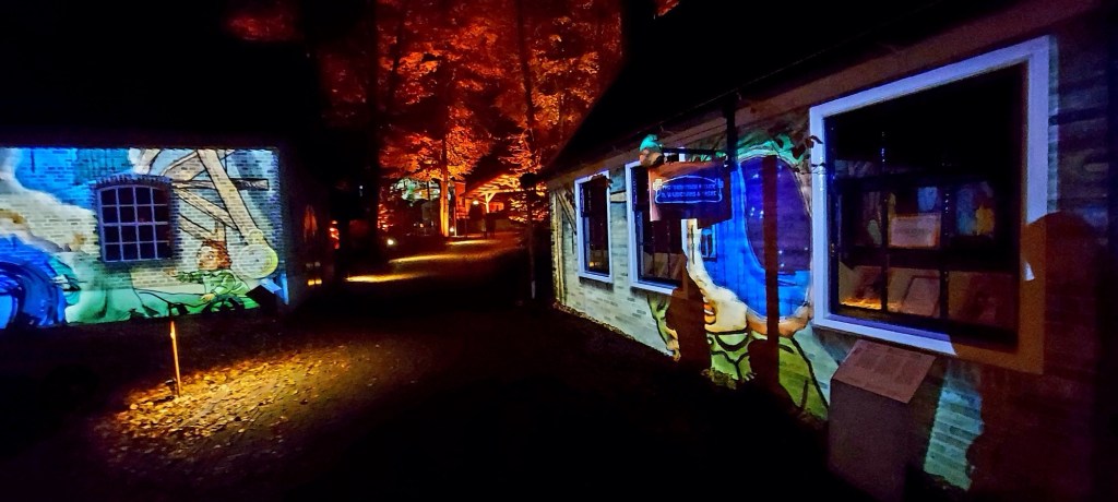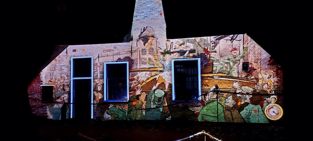 Het was druk maar prima te doen. Je liep via een route van gebouw naar gebouw. Daar werd steeds een verhaal verteld. Een mooi verhaal over de oorlog. Heel duidelijk. De beelden waren prachtig.