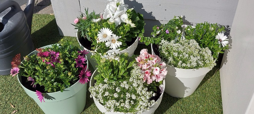 Oei. Hoe ging ik deze in potten zetten. Eva wil al heel lang meer kleur in de tuin. Mijn moeder was van paars, roze en blauw. Tja. Ik dacht let it go. Ik ga er ook voor. Het draait niet alleen om mij. Eva en mijn ouders hebben ook inspraak. Pa zei nog; die paarse kan ik wel eventueel terug nemen.