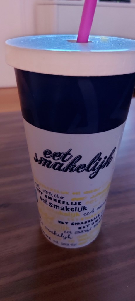 By the way, het rietje was niet van papier. Gewoon plastic. Yes! Geen rietje wat samen klapt.