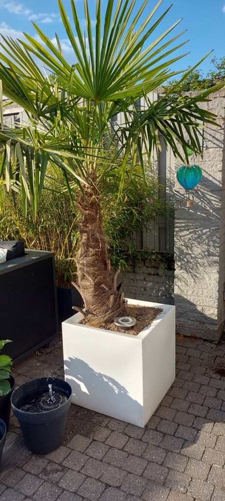 Kijk naar de planten. Die in de zon staan zijn nu groener dan de schaduw planten. Zo ook de palmbomen. De schaduw boom is kleiner dan de palmboom die in de zon staat.