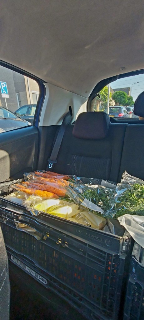 Van te voren hadden wij mensen een app gestuurd. Daardoor kon veel opgehaald worden. Ikzelf had een adres waarvan ik weet dat zij veel uitdeelt en de rest in een vriezer gooit.