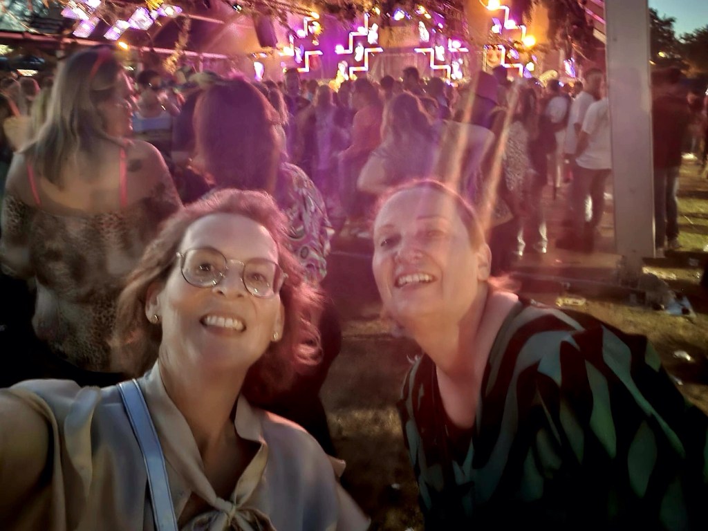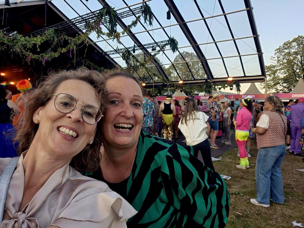 Gisteravond hadden wij een foute muziek party. Iedereen op het werk riep dat dat in de brabanthallen zou zijn. Echt niet. Amersfoort. Buiten. Wat een geluk hadden wij met het weer. Er liep van alles rond. Ook nog veel oudere mensen. Wij vielen niet op. En de muziek? Die was fantastisch! Je ziet mij ook stralen op de foto’s. Ik begin aan de uitjes te wennen en leer daar van te genieten.