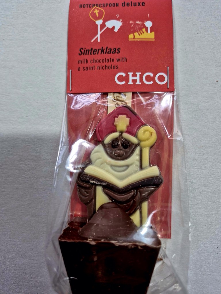 Onze winkel was afgelopen zaterdag dus enorm gevuld. Mensen kregen extra dingen mee ivm de feestdagen. Zo ook een tas met een chocolade letter en een VVV bon dankzij mijn collegaβs.